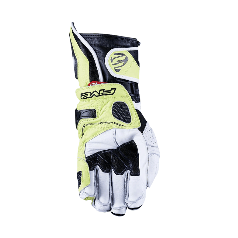 Racing glove designed for the racetrack and sports. The RFX1 includes ventilated PU knuckle shells and a large carbon shell to protect the forearm. It offers all the features of a top-of-the-line glove geared towards performance. Kevlar® lining, carbon reinforcements and full grain leather for protection, Stretch Kevlar® for comfort, a protective barrier for both the palm and the top of the hand, while providing an exceptionally lightweight fit. It also features new Stretch Kevlar® and leather construction (instead of all-leather) on the thumb, for improved comfort. The palm features reinforcement in digital pittards leather for optimal grip in wet conditions. The Velcro® adjusting strap is concealed beneath a protective leather flap to reduce the risk of the glove being torn off in the event of a fall. This top-of-the-range Racing glove will delight demanding riders of sports bikes, who favor control sensitivity and fit, without overlooking safety. Available in standard and replica versions.